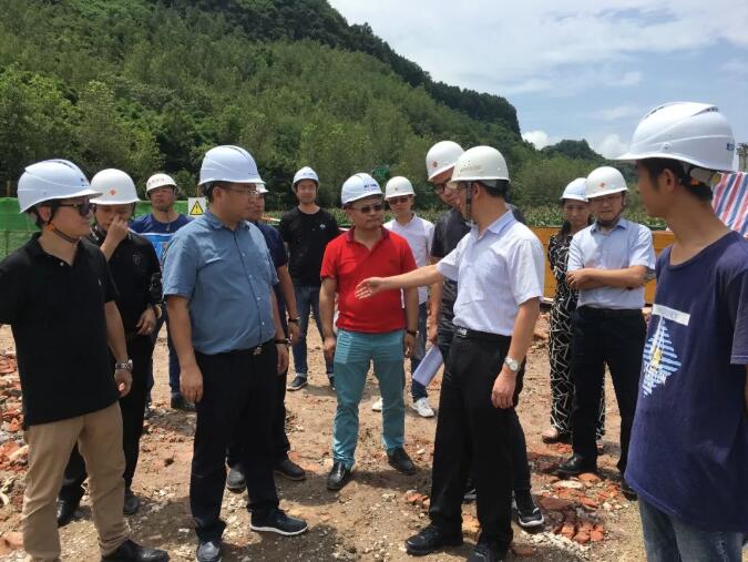 2019年7月24日,重慶市環(huán)保投資集團(tuán)有限公司錢忠明董事長一行到昆頂環(huán)保萬州分水鎮(zhèn)(張家嘴)污水處理廠EPC工程項(xiàng)目檢查指導(dǎo)工作。錢董事長一行在我公司領(lǐng)導(dǎo)冉云、謝嘉及項(xiàng)目部相關(guān)人員介紹下,聽取了安全文明施工、質(zhì)量管控、項(xiàng)目施工進(jìn)度及施工重難點(diǎn)等情況匯報(bào)。